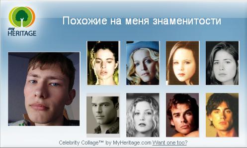 | гы, я похож на JC Chasez, Leisli Nilsen, Sinead O'coner, Ryan Phillippe, Tarkan ;), Gale Harold, Fernanda Tavaras, Kevin Zegers, Tom Cruise, Johnny Depp это всё я в одном лице)